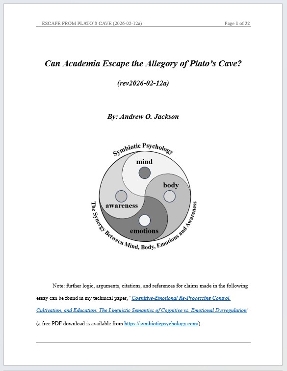 (Reference: Jackson, A.O. (2026). (Technical Paper with Supplements.) Cognitive-Emotional Re-Processing Control, Cultivation, and Education: The Linguistic Semantics of Cognitive vs. Emotional Dysregulation. Symbiotic Psychology Press. (15,500-word paper, free PDF download, new tab)