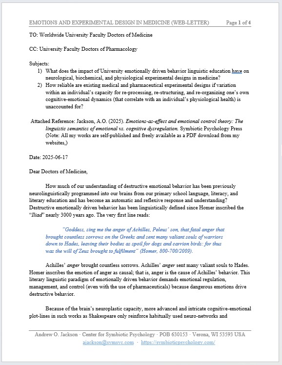 (Reference: Jackson, A.O. (2026). (Technical Paper with Supplements.) Cognitive-Emotional  Re-Processing Control, Cultivation, and Education: The Linguistic Semantics of Cognitive vs. Emotional Dysregulation.  Symbiotic Psychology Press.    (15,500-word paper, free PDF download, new tab))